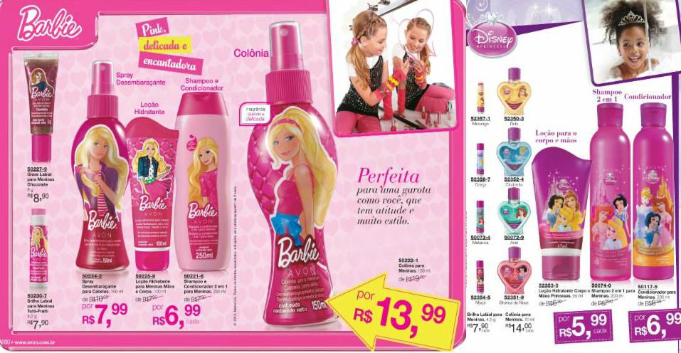 Barbie Glamour e estilo Colônia Perfumada 50ml R$ 25,00 Blush em creme 5g Gloss Labial...